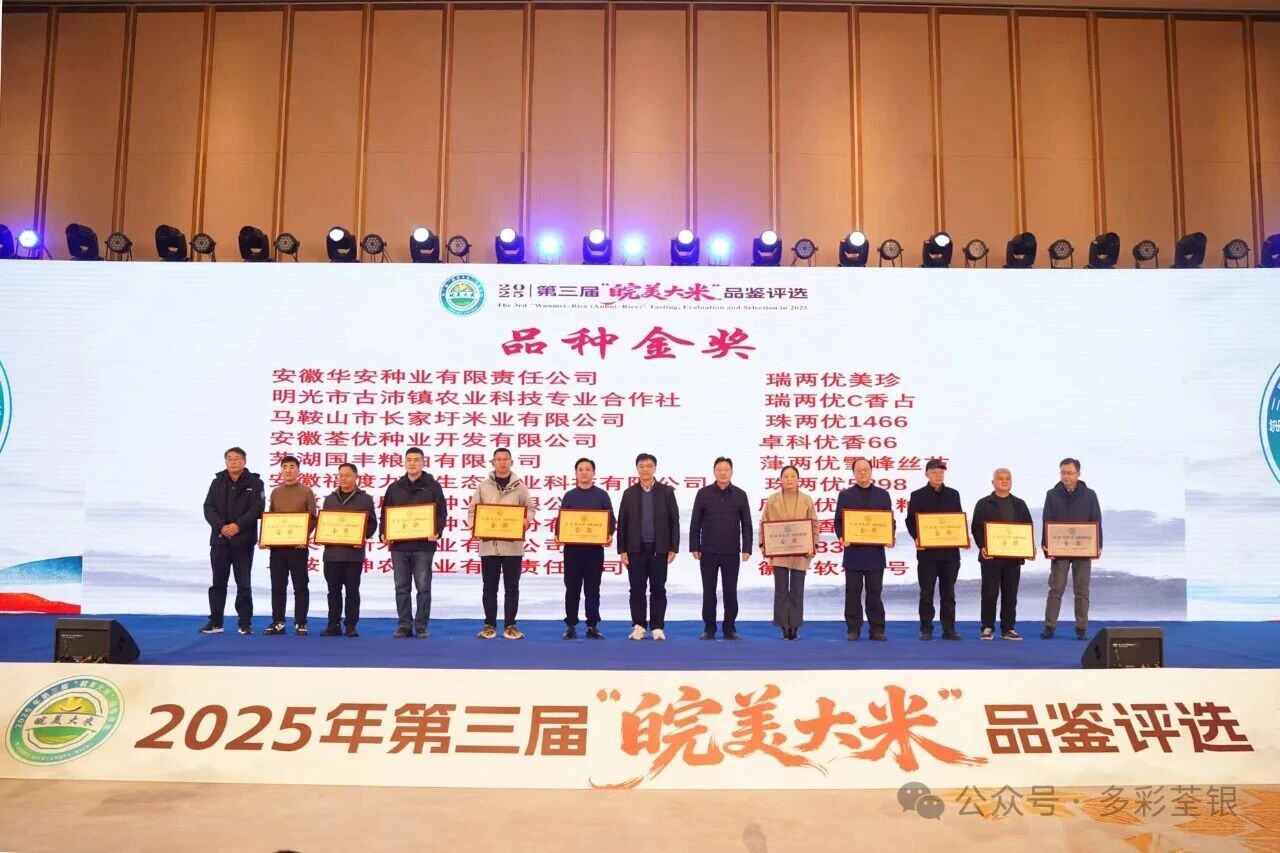 12月21日,第三届“皖美大米”品鉴评选结果发布会在合肥举行,活动由安徽省农业农村厅、安徽省粮食和物资储备局主办,安徽省农业技术推广总站、安徽省农业科学院水稻研究所承办。来自荃银高科的品种瑞两优美珍、瑞两优C香占、卓科优香66、欣两优黄秀籼、科优香 66,荣获优质稻品种食味品鉴金奖,金奖占比50%。此外,荃银高科的品种荃广优银泰香占、荃香19荣获优质稻品种食味品鉴银奖。